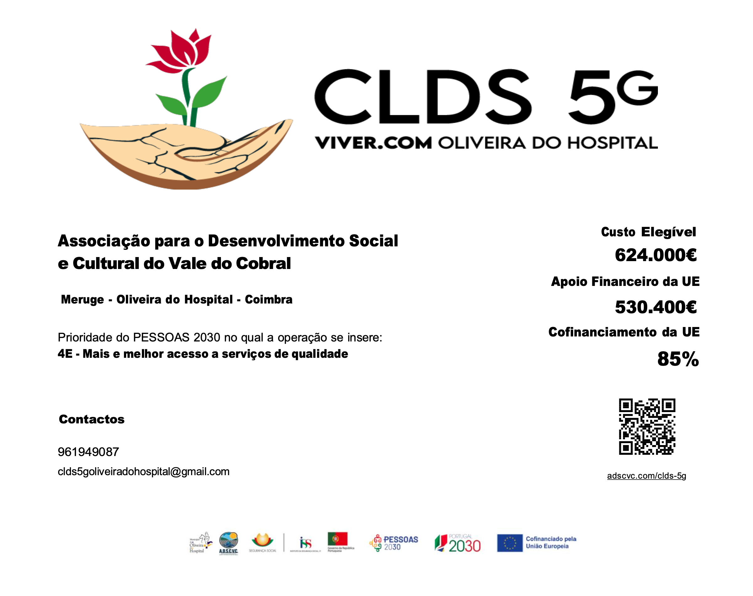 Projeto que assume como missão reforçar a empregabilidade e a qualificação profissional, promover o envelhecimento ativo e a autonomia da população idosa e apoiar famílias em situação de vulnerabilidade. Para tal, o CLDS 5G VIVER.COM Oliveira do Hospital pretende desenvolver ações socioculturais e iniciativas de acompanhamento em grupo e individual. Paralelamente, promove a dinamização de workshops, ações de formação e programas de voluntariado, incentivando a participação ativa da comunidade e o fortalecimento das redes de suporte locais. O projeto visa ainda facilitar o acesso da população residente em situação de isolamento social a diversos serviços de utilidade pública, garantindo uma maior proximidade e acessibilidade a recursos essenciais.